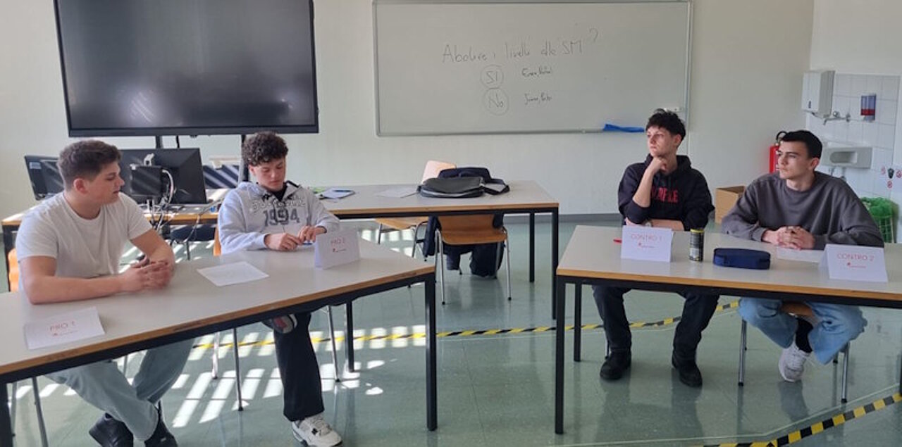Raccogliendo l’iniziativa dell’associazione La Gioventù Dibatte, la nostra sede ha deciso di coinvolgere una classe di seconda maturità in questa discussione. Nella foto, favorevoli e contrari all’abolizione dei livelli A e B si confrontano di fronte al resto della classe, a dimostrazione che esperienze simili non generano per forza pareri unanimi.