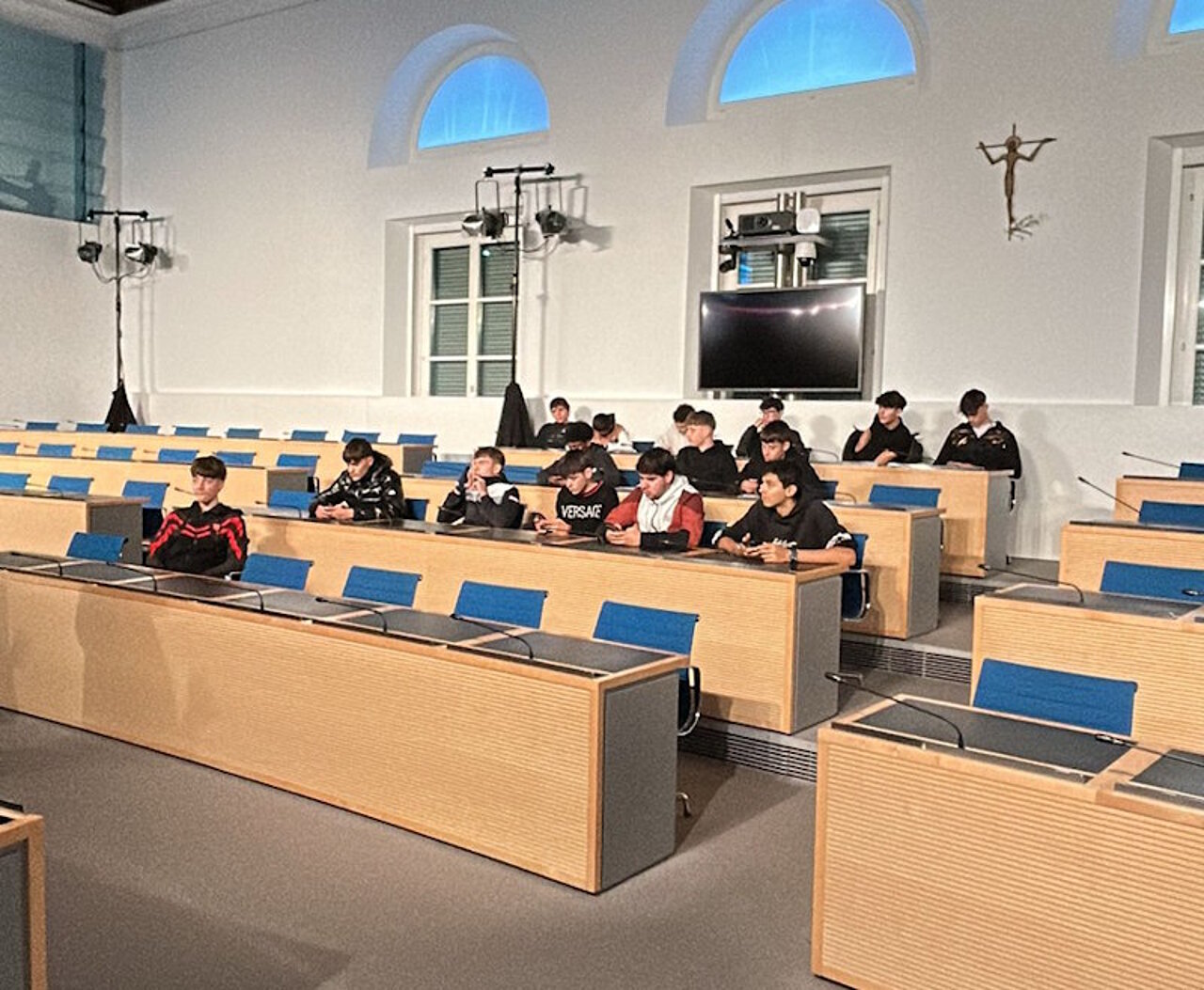 Non si è mai troppo giovani per interessarsi alla politica. Per questo, gli apprendisti operatori di edifici del primo anno, si sono recati a Bellinzona, dove hanno visitato il palazzo delle Orsoline, sede del Gran Consiglio ticinese. Nel corso della loro visita, i ragazzi si sono accomodati sulle poltrone del Parlamento e hanno appreso il funzionamento delle nostre istituzioni, mostrando grande interesse e ponendo molte domande.